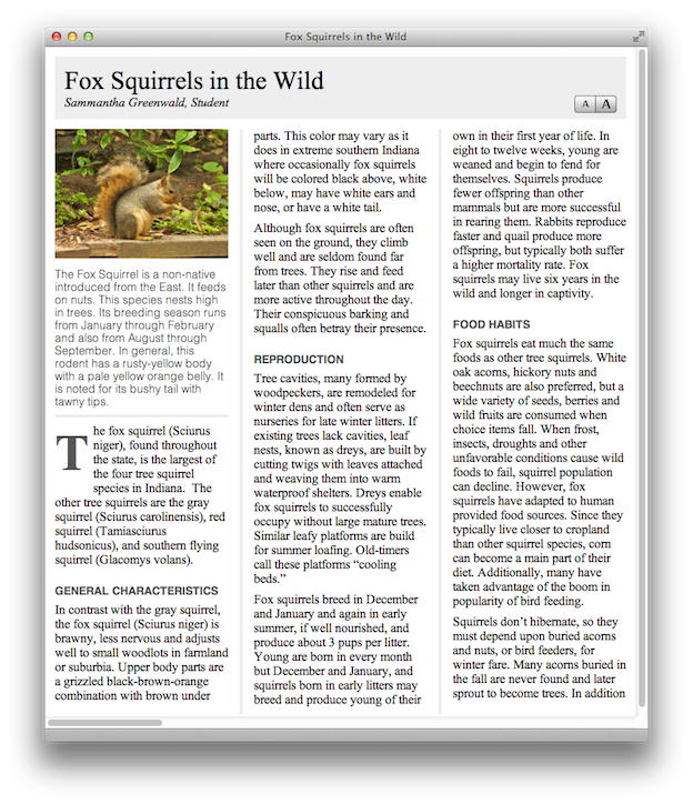 DO THIS ► Open the text file Fox Squirrel.rtf by double-clicking its icon. By default, the file should open in the TextEdit application.